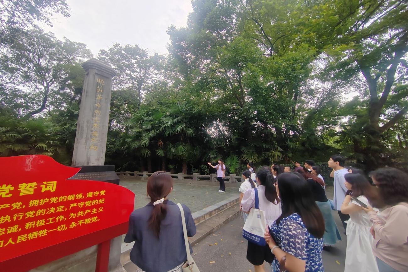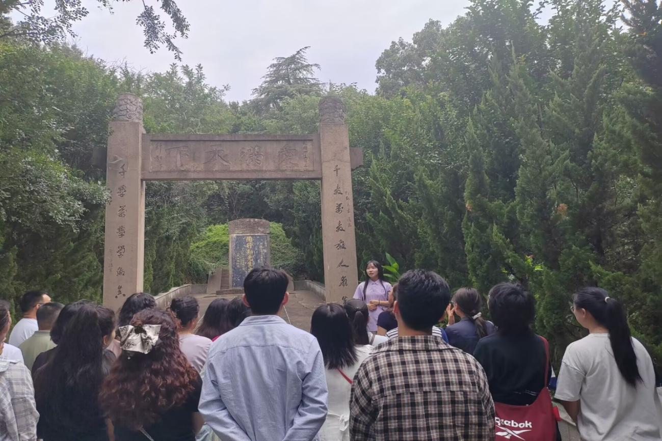 在莊重的行知園內(nèi),同學(xué)們引導(dǎo)教師們瞻仰了陶行知墓、曉莊十英烈紀(jì)念碑,并圍繞“師德”主題,詳細講解了陶行知先生“愛滿天下”“教學(xué)做合一”的教育理念與奉獻一生的偉大事跡。她們精準(zhǔn)、生動的解說,將厚重的教育歷史化為滋養(yǎng)師德的生動教材,深深打動了在場的每一位老師,為其帶來了一場深刻的師德洗禮。