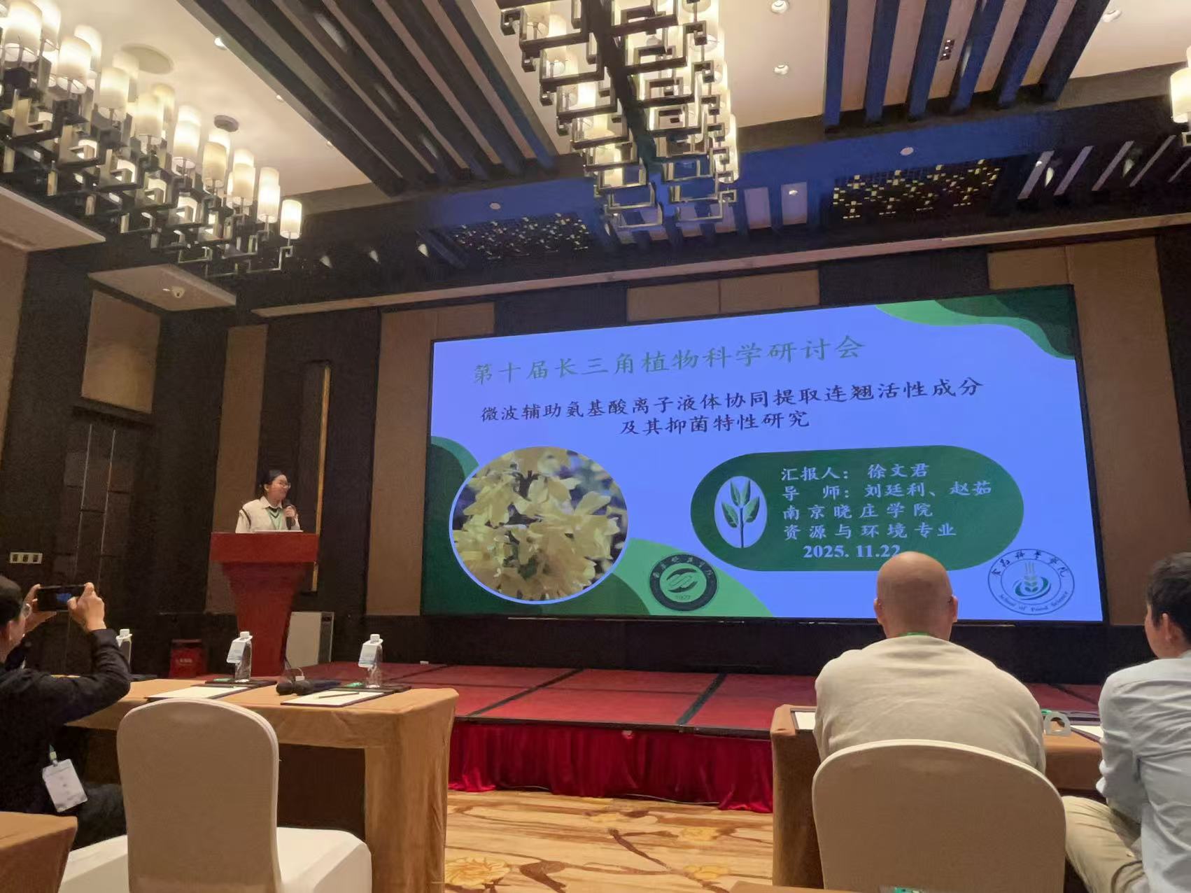 會(huì)議期間,食品科學(xué)學(xué)院參與學(xué)術(shù)研討與成果展示。趙茹老師作了題為《PARylation 修飾水楊酸受體蛋白GhNPR4調(diào)控棉花廣譜抗黃萎病的分子機(jī)制解析》的報(bào)告,系統(tǒng)闡述了 PARylation 修飾在棉花抗黃萎病調(diào)控中的關(guān)鍵作用,為作物抗病育種提供了新的分子靶點(diǎn);研究生徐文君以《微波輔助氨基酸離子液體協(xié)同提取連翹活性成分及其抑菌特性研究》為題進(jìn)行匯報(bào),分享了新型提取技術(shù)在天然產(chǎn)物開發(fā)中的應(yīng)用成果,展現(xiàn)了食科學(xué)學(xué)院研究生扎實(shí)的科研基礎(chǔ);張娜作《菥蓂葉中異葒草苷和異牡荊苷活性成分的高效提取及分離優(yōu)化研究》報(bào)告,介紹了菥蓂活性成分提取工藝的創(chuàng)新優(yōu)化,為藥用植物資源的開發(fā)利用提供了實(shí)踐參考。三位匯報(bào)人的研究成果聚學(xué)科前沿、兼具理論價(jià)值與應(yīng)用前景,得到了與會(huì)專家的廣泛關(guān)注與高度評(píng)價(jià)。