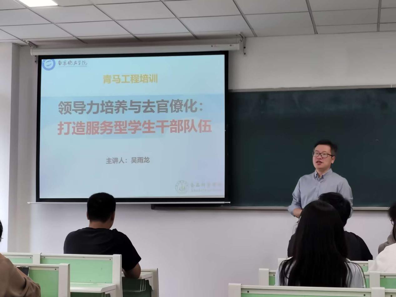 本次培訓(xùn)形式多樣,結(jié)合了線下專題課程、線上理論學(xué)習(xí)、小組交流與調(diào)研實踐等多種方式,旨在全方位提升學(xué)院學(xué)生骨干的思想政治素養(yǎng)與實踐能力。在理論學(xué)習(xí)環(huán)節(jié),共開展了四次專題授課:學(xué)院黨委副書記、副院長吳雨龍以“領(lǐng)導(dǎo)力培養(yǎng)與去官僚化:打造服務(wù)型學(xué)生干部隊伍”為題授課;學(xué)院團委書記唐翔講授“愚公移山精神的時代價值”;環(huán)境科學(xué)學(xué)院輔導(dǎo)員鮑睿瓊圍繞“‘為人民服務(wù)’中的青春力量”展開講解;馬克思主義學(xué)院輔導(dǎo)員沈萍則以“勿忘國恥、圓夢中華——青春為中國式現(xiàn)代化挺膺擔(dān)當(dāng)”為題進行授課。這些課程著重引導(dǎo)學(xué)生骨干堅定理想信念,提升扎實的工作能力與良好的溝通能力等綜合素質(zhì),致力于打造一支優(yōu)質(zhì)的服務(wù)型學(xué)生骨干團隊。