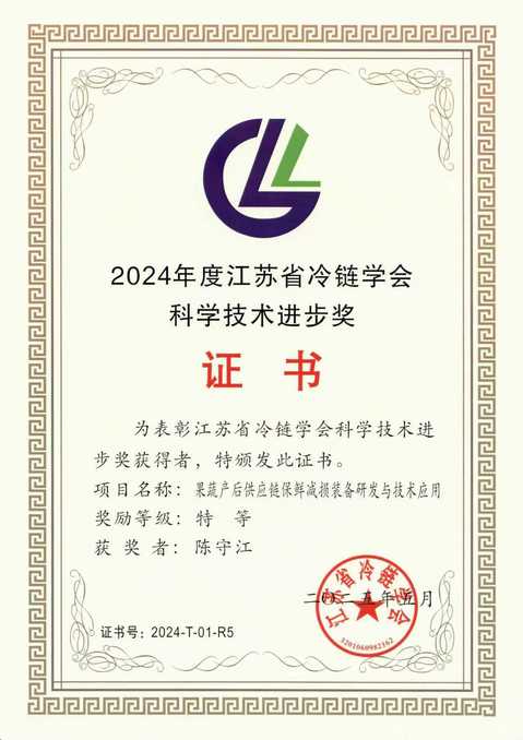 江蘇省冷鏈學(xué)會(huì)科學(xué)技術(shù)獎(jiǎng)