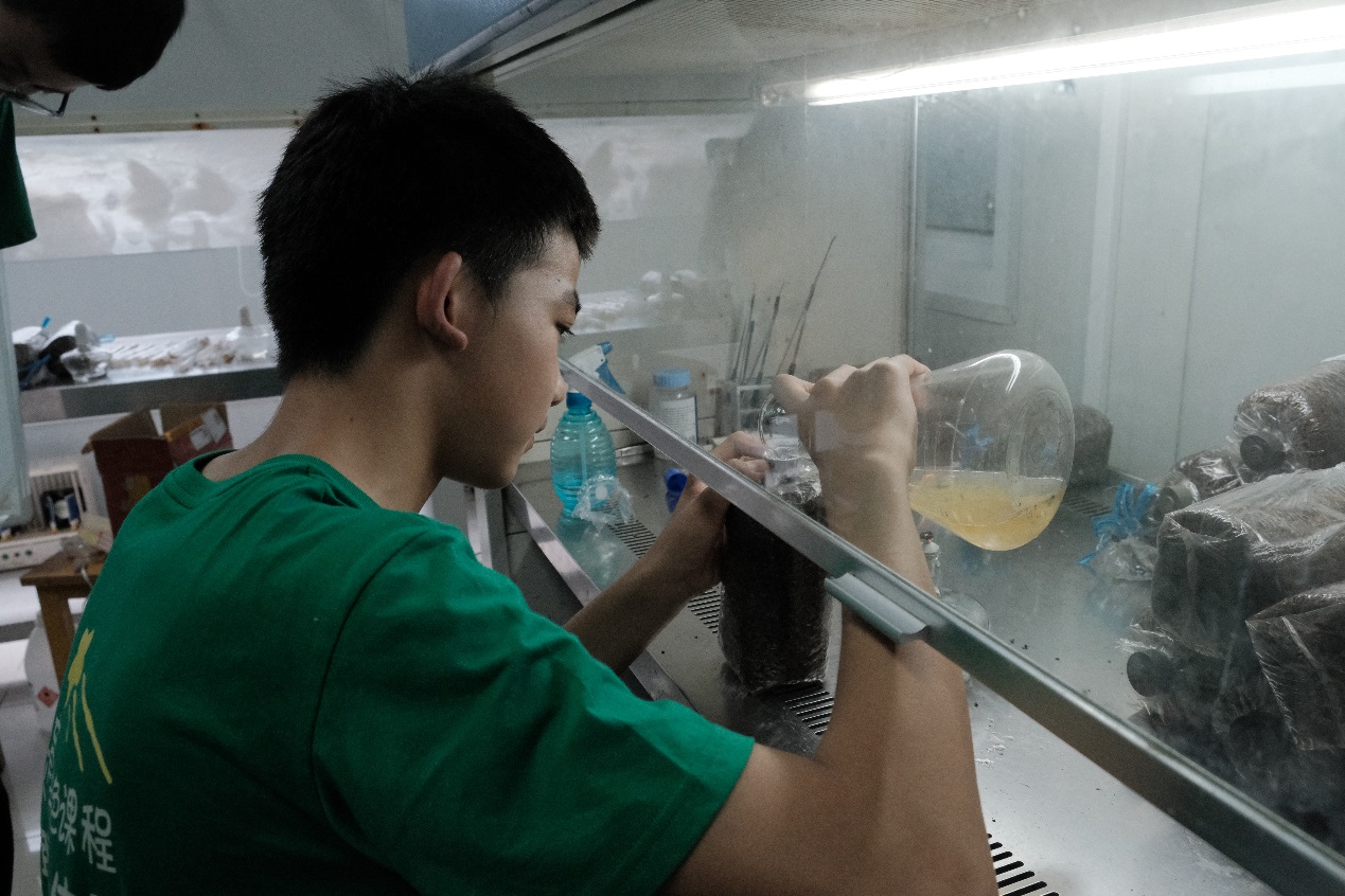 同學(xué)們首先走進(jìn)“蘑菇的神秘世界”,參觀食用菌栽培室、科普相關(guān)食用菌知識(shí),了解多彩的食用菌世界,激發(fā)同學(xué)們探索菌物世界奧秘的興趣;親身體驗(yàn)了制作培養(yǎng)袋、栽培菌株的過程,實(shí)現(xiàn)與“菌菇共成長(zhǎng)”,體驗(yàn)科學(xué)探索的魅力;親手制作菌菇食品、感受舌尖上的美味,理解“一葷一素一菇”健康理念,體會(huì)莫愁前路無知己,天下誰(shuí)人不食“菌”的豪情。