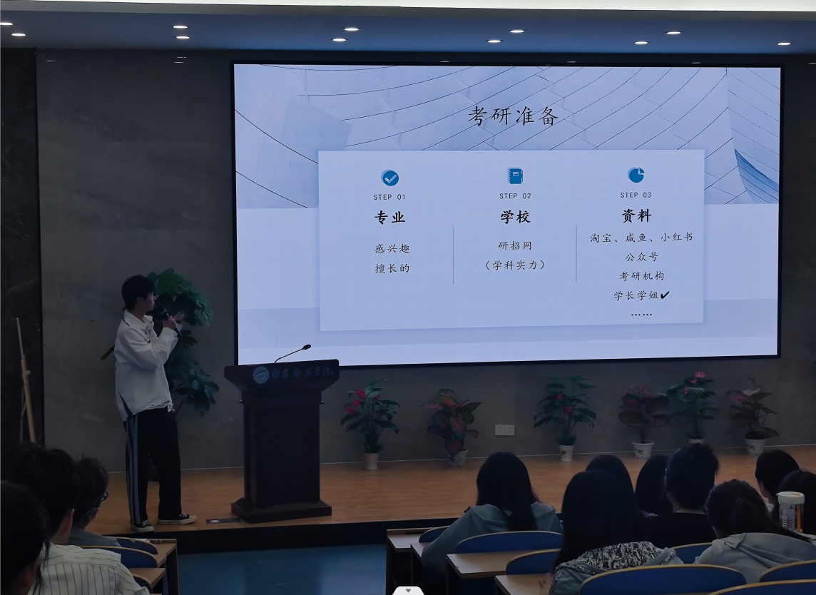 互動環(huán)節(jié),考研優(yōu)秀學生代表耐心細致地一一回答了低年級考研學生提出的疑惑,氣氛十分活躍。低年級考研學生紛紛表示在此次考研經(jīng)驗交流分享會中收獲滿滿,進一步明確了考研目標和各階段重點,增強了考研信心。