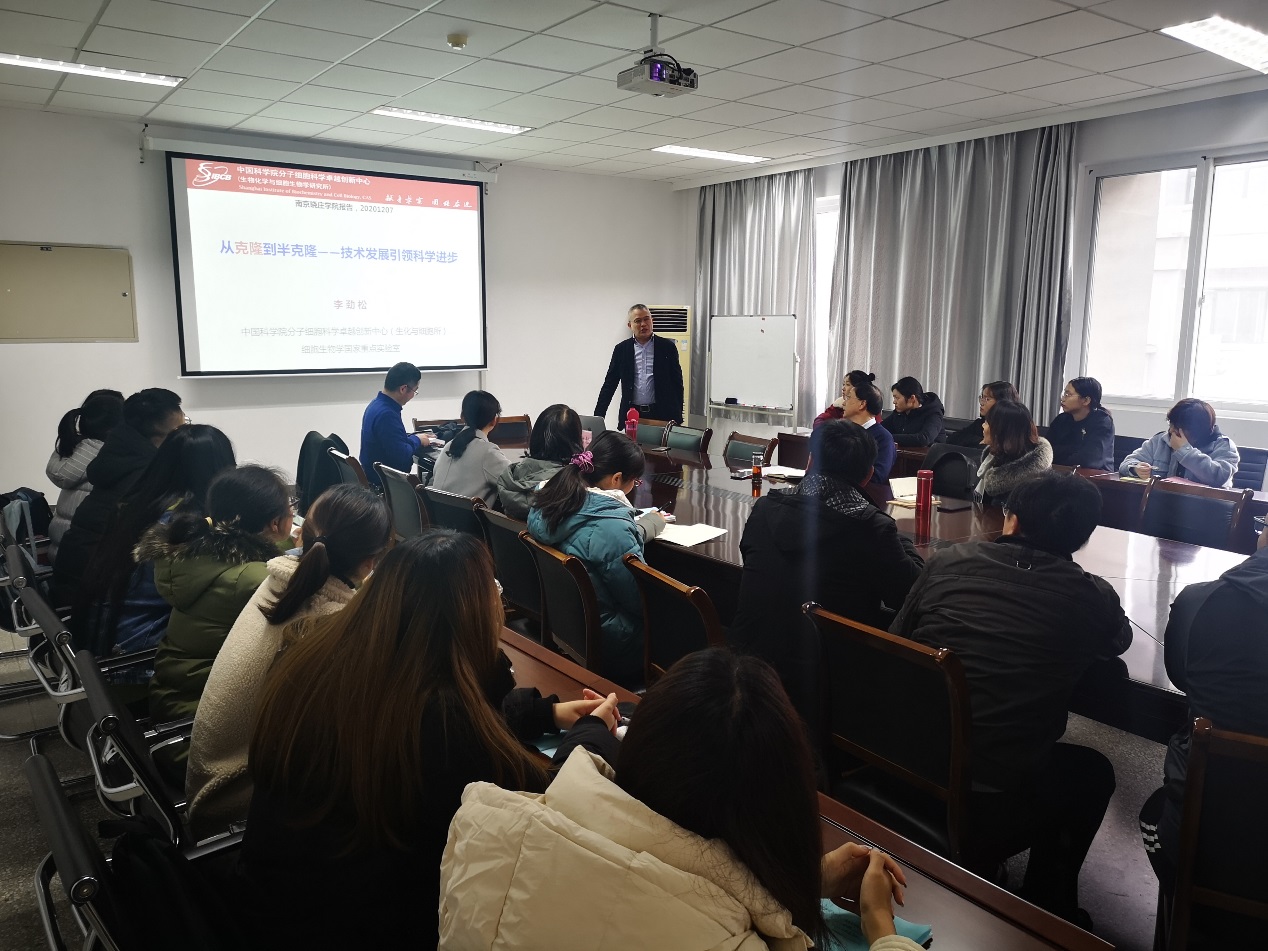 12月7日下午,應(yīng)食品科學(xué)學(xué)院邀請,中科院上海生科院生物化學(xué)與細胞生物學(xué)研究所李勁松研究員來訪我校并在理科組團C405會議室做了一場精彩的學(xué)術(shù)報告,專題學(xué)術(shù)報告的題目為“從克隆到半克隆—技術(shù)進步引領(lǐng)科學(xué)發(fā)展”。食品科學(xué)學(xué)院陳全戰(zhàn)副院長主持報告會。