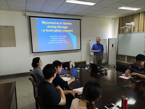 5月22日下午,食品科學學院特邀加拿大馬尼托巴大學張強教授為師生作“Mycotoxins in grains during storage-a food safety concern”的學術(shù)報告,食品科學學院黨政負責人及部分師生聆聽了該報告。